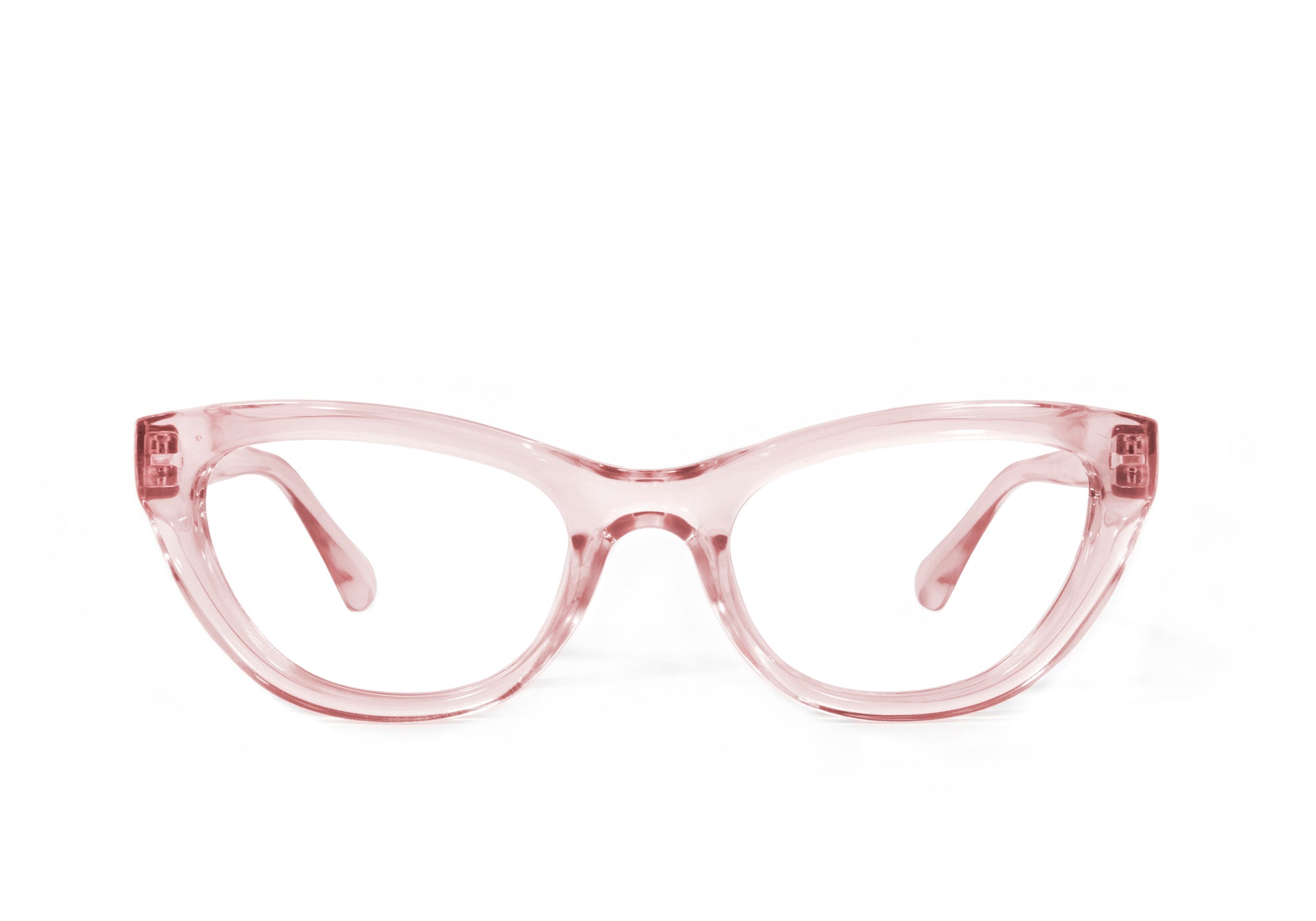 "Emma is really fun frame with the playful cat eye design and the pink frost colour is really cute." -Sarah Newcombe